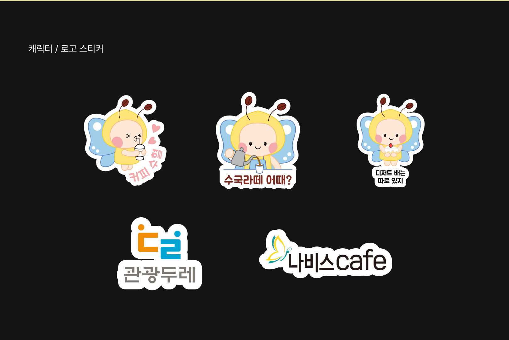 전남 관광 두레에서 주관한 지역 협력 사업 멘토링으로 참여했습니다. 활성화를 위한 나비스 카페의 캐릭터 개발과 포스터, 스티커 등 애플리케이션을 제작하고 제작까지 진행했습니다.
